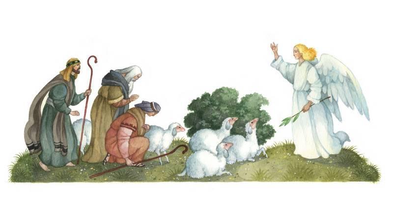 Сияли звёзды. Пастухи в поле недалеко от города сторожили стадо овец. Вдруг небо озарилось ярким светом, и им явился Ангел Господень. Пастухи в страхе задрожали, но Ангел сказал им: