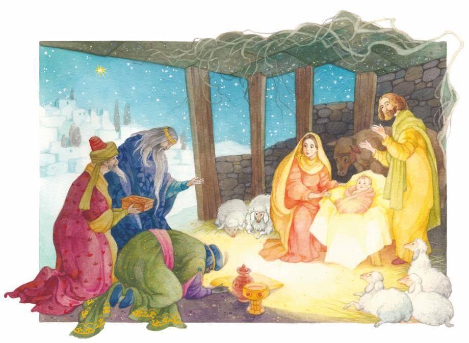 Наступила чудесная звёздная ночь, и у Пресвятой Девы родился Младенец Иисус, Сын Божий, Спаситель мира. Счастливая Мать спеленала Дитя и положила в ясли – кормушку для скота.