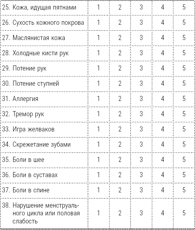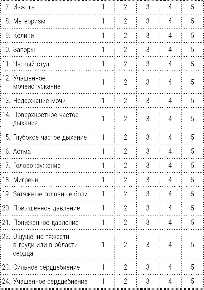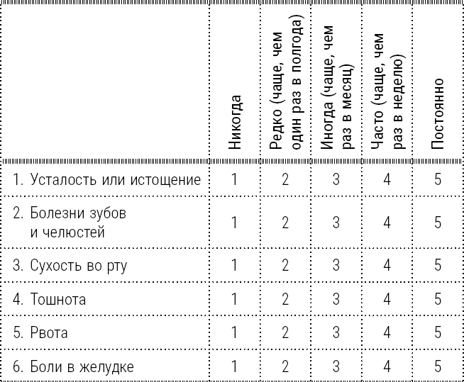Отметьте то число, которое отражает частоту проявления у вас того или иного симптома, а потом подсчитайте общую сумму.