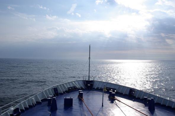 Довольный, продолжаю прогулку. Перехожу на нос корабля. Берега шведских островов скрылись с горизонта, вокруг одна водная пустыня. Здесь ветер дует в лицо, если долго стоять, можно и замерзнуть…