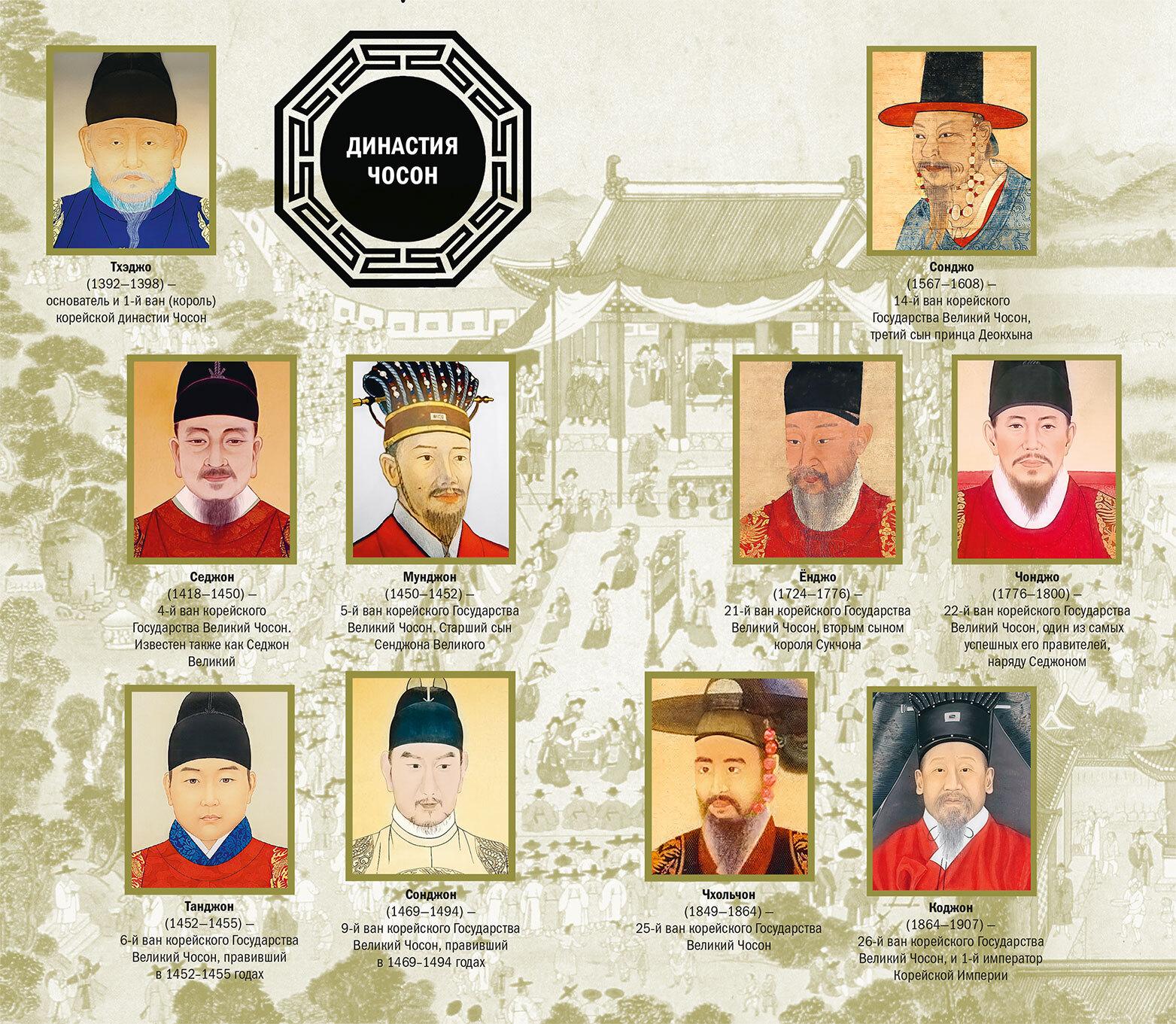 Какие имена сразу же приходят на ум при словах «династия Чосон»? Основатель династии Ли Сонге, Седжон Великий, Инджо, вынужденно признавший себя цинским вассалом, Хынсон-тэвонгун, да злодейски убитая японцами ванби Мин… Но династия Чосон насчитывает двадцать семь правителей (а с Вонджоном, которого его сын в знак уважения посмертно возвысил до статуса вана – так и все двадцать восемь) и правление каждого из них представляет собой отдельную страницу в истории Кореи. Разве можно читать книгу, пропуская страницы? Вряд ли от подобного чтения будет польза.