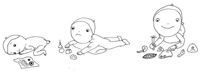 Для натренированного малыша опереться на предплечья и пошевелить пальчиками, изучая текстуры и формы объектов, уже не сверхзадача, а один из инструментов исследования. Чем более активны его пальчики, тем быстрее расслабляются кулачки, развивается опора на ручки и формируется важная вертикализация – ползание и сидение [15, 16].