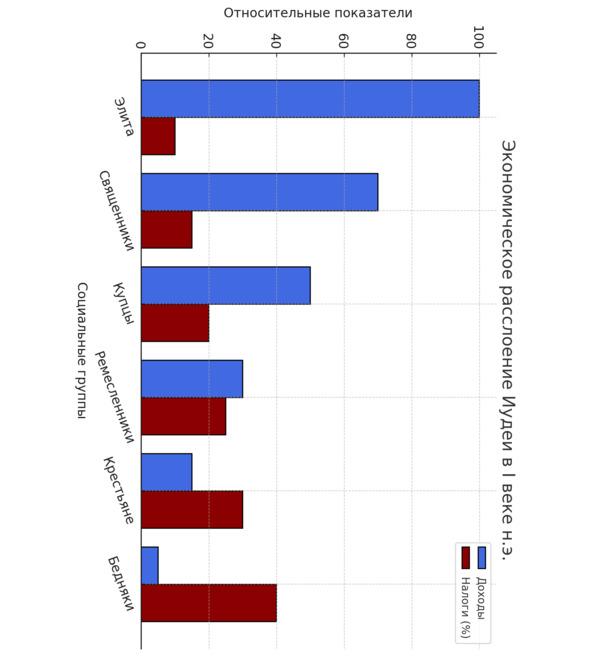 Экономическая структура Иудеи в I веке н. э. была крайне неравномерной. Общество разделялось на несколько социальных классов, различавшихся не только по уровню доходов, но и по степени влияния на политическую и религиозную жизнь. Это расслоение усугублялось римской оккупацией, ростом налогового давления и внутренними конфликтами между различными группами населения.