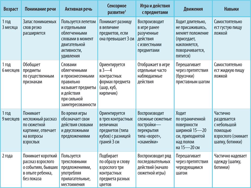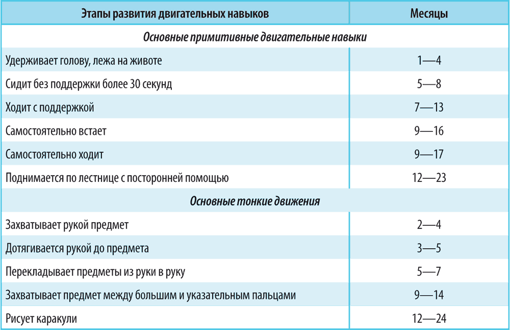 1.13.1. Основные этапы развития двигательных навыков у детей первых двух лет жизни