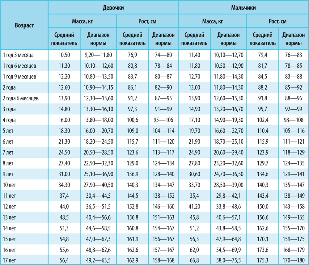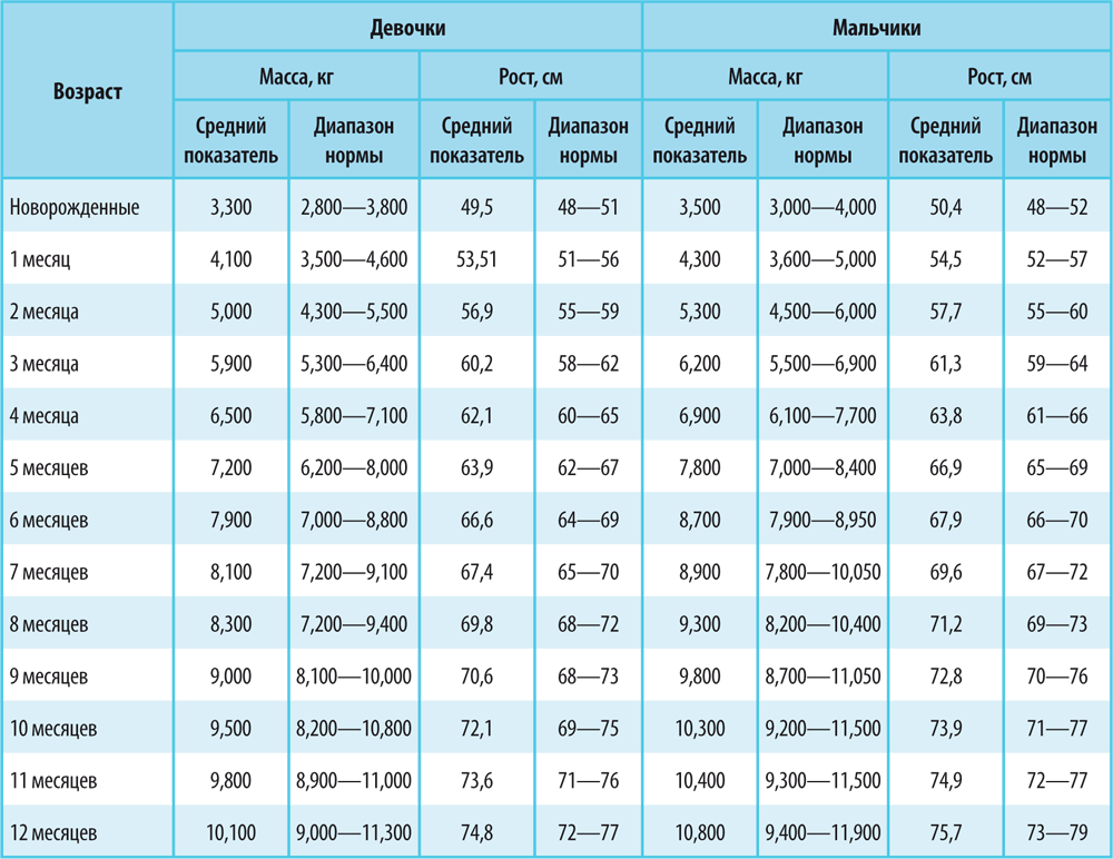 Если рост и вес вашего ребенка соответствует приведенным показателям – это нормально. Если же не соответствует, то с огромной вероятностью это тоже нормально, но желательно пообщаться с доктором, который подтвердит, что повода для волнений действительно нет.