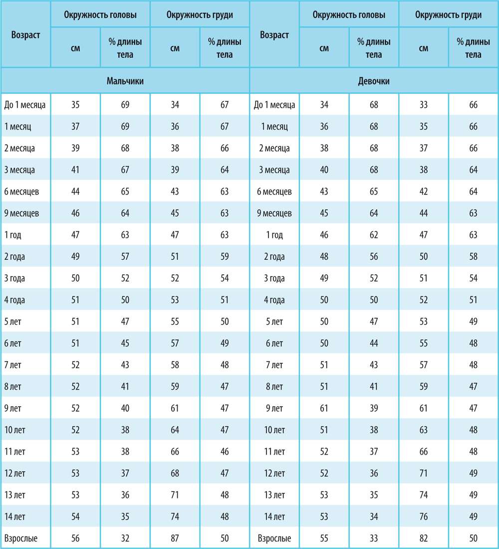 От 10 до 20 % абсолютно нормальных детей «не вписываются» в диапазон нормы, указанный в таблице.