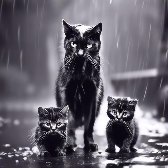 Кошечка учила котят охотиться в любое время года, чтобы они, как она сама, всегда могли добыть себе пищу. И вот однажды, когда кошечка с котятами отправились на охоту, работники ЖКХ приехали и холодной сваркой наглухо закрыли все окошки, через которые можно войти в подвал, а жители многоэтажки были на работе и не заметили того.