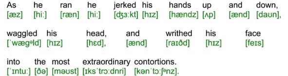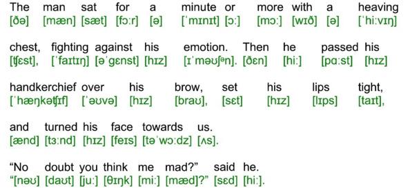 Таким образом, чтение рассказа производится с «подсказками» в виде транскрипции, прослушиванием аудиокниги и закреплением пройденного материала путём выполнения заданий.