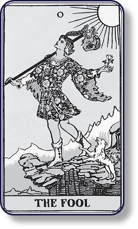 Есть версии, что на карте Шут изображен Спаситель Иисус Христос. Возможно, спасение человечества являлось безумием — и оттуда название? Существуют иллюстрации, картины и иконы, где Иисус спасает заблудшую овцу от падения в пропасть. Может быть, его прообраз в этой ситуации и стал скрытым смыслом данного аркана. Но и в самом изображении мы также видим попытку собаки спасти Шута от падения в пропасть.