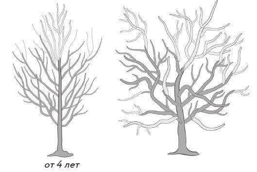 Обрезку сильно загущенного дерева растягивают на 2–3 года, чтобы оно не испытало шока от радикального удаления значительной части ветвей.