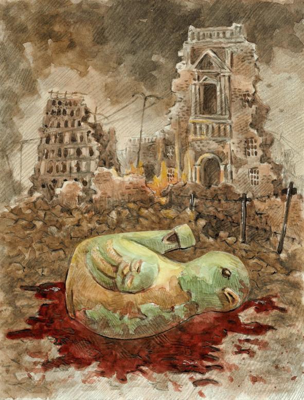 Миролюбие граждан Города не знает границ, но живя в осажденной крепости, они вынуждены пребывать в постоянной готовности к отпору. Бог войны всегда требовал поклонения и жертв — и ему молились истово. Проводили парады детских колясок, декорированных под военную технику былых времен (а в колясках ехали младенцы в крошечной военной форме). Организовывали школьные праздники, где шеренги детей нестройно маршировали с военно-патриотическими песнями под строгими взглядами орденоносных портретов. Те школьники, которых не отобрали в солдаты, наряду с обычными уроками каждую неделю учились бросать гранаты и собирать автомат — на всякий случай. Для жителей Города Бог войны назывался Миролюбием. И наверное, он с одобрением взирал на своих адептов.