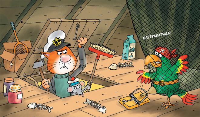 — Он говорит, что не перелетит через океан, — сказал мышонок, успевший подружиться с бывшим пиратом. — А если и доберётся до острова, то в одиночку не унесёт сокровища. Там их знаешь сколько!
