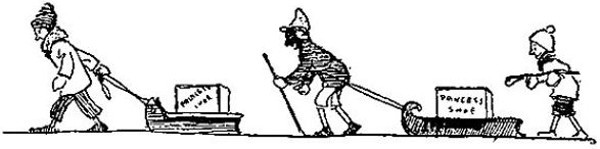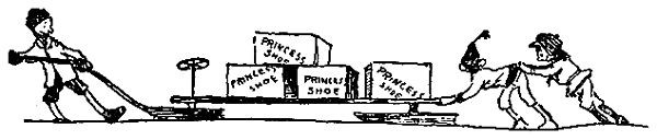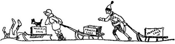 There were about three hundred kids lined up there, each one with a sled, and I wondered what in the world they were up to, when one staggered around the corner of our building, dragging a sled after him, on which was perched a shoe case with "The Princess Shoe," stencilled in red letters across the top.