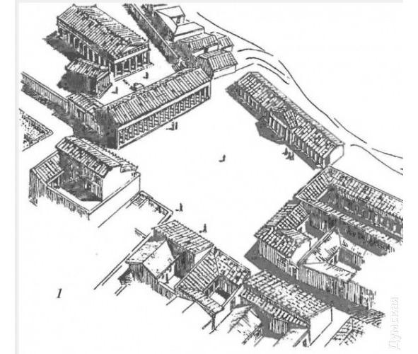Агора Ольвии. Примерно так, должно быть, выглядела и главная площадь Тиры. Реконструкция из учебника В. Л. Янина
