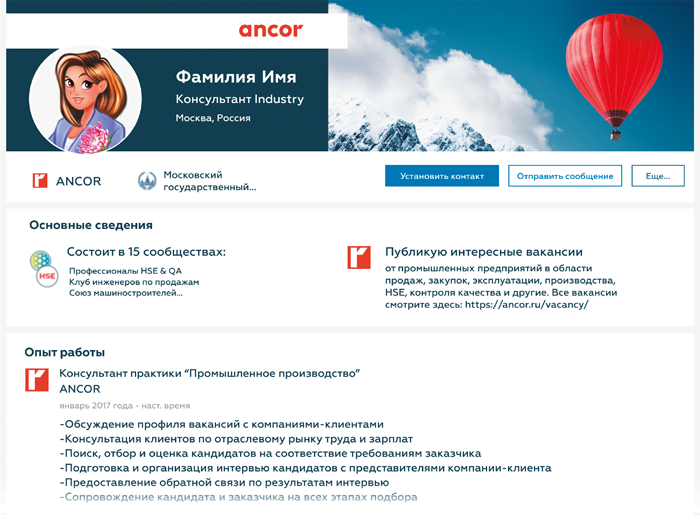 - включить в ваше профессиональное портфолио описание экспертизы в рекрутменте (стаж в профессии, специализацию), образование [2], примеры закрытых вакансий, ссылки на социальные сети и экспертные публикации в открытых источниках, рекомендации кандидатов и клиентов. Портфолио пригодится вам во всех внутренних и публичных активностях — от создания профиля [3] в социальных сетях до переговоров с заказчиком/партнерами и выступлений на деловых мероприятиях;
