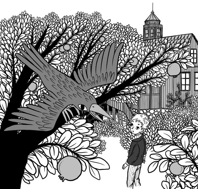 Я выглянул в покрашенное облупившейся темно-зеленой краской окно рядом с входной дверью. За окном сидела, нахохлившись, та самая ворона, которую я встретил в саду. Она наклонила голову и снова, уже настойчивее, постучала клювом в оконный переплет.