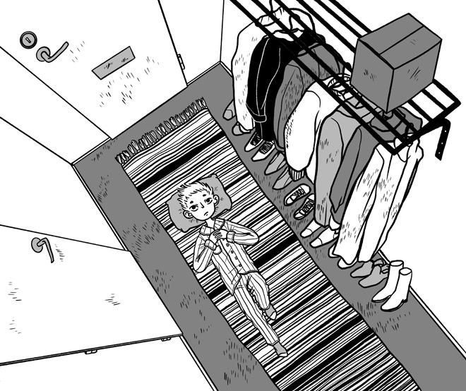 Я уже перепробовал все, что только можно. Открывал окно, переворачивал подушку. Надел носки, снял носки. Попил воды, сходил в туалет, съел половину маринованного огурца, попил еще раз. Ничего не помогало, тогда я взял под мышку одеяло и подушку и пошел в прихожую. Вытянулся на шершавом коврике, сунул подушку под голову, а под подушку фонарик, я его часто носил в кармане пижамы. Коврик не пылесосили целую вечность. Мелкие камушки впивались в спину, а комки уличной грязи рассыпались подо мной в пыль, но в целом жить можно. Хоть какое-то разнообразие в бессонную ночь.