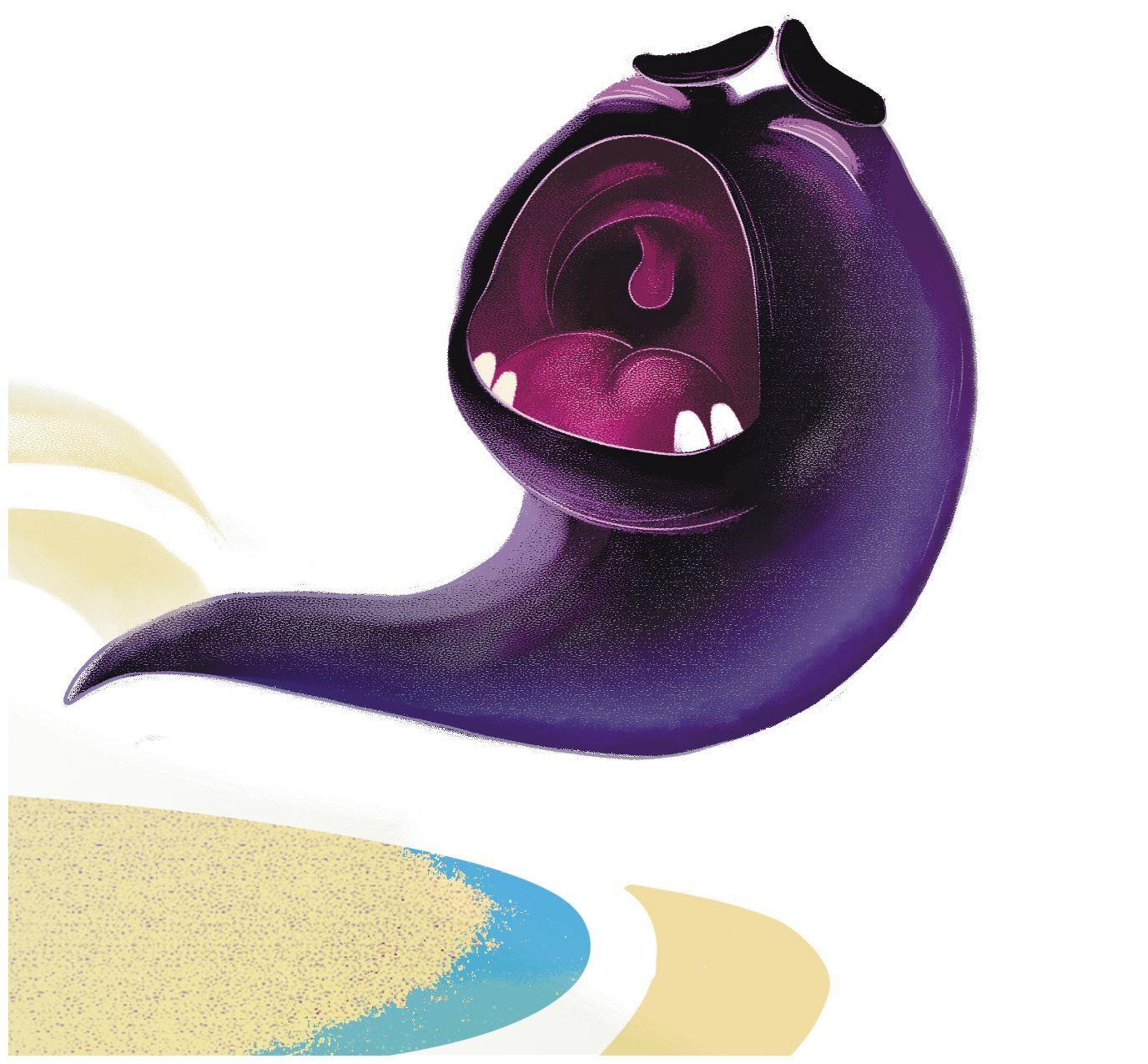 Малыш поднял камень, под которым, как оказалось, спало маленькое чёрное существо – пиявка. Это она пускала пузыри. Пиявка спросонья посмотрела на незваного гостя и тотчас же унеслась прочь с истошными воплями. Какие все странные…