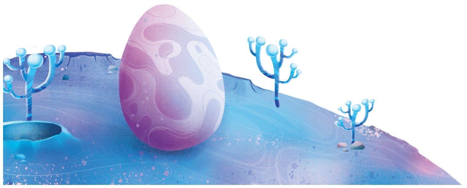 И вот представьте, на поверхности луны, покрытой кратерами и неровностями, на фоне ослепительного звездопада, вдруг появилось яйцо. Оно было светло-фиолетового оттенка с неровными пятнами. Кто там? Лунный динозаврик? Или птенец?
