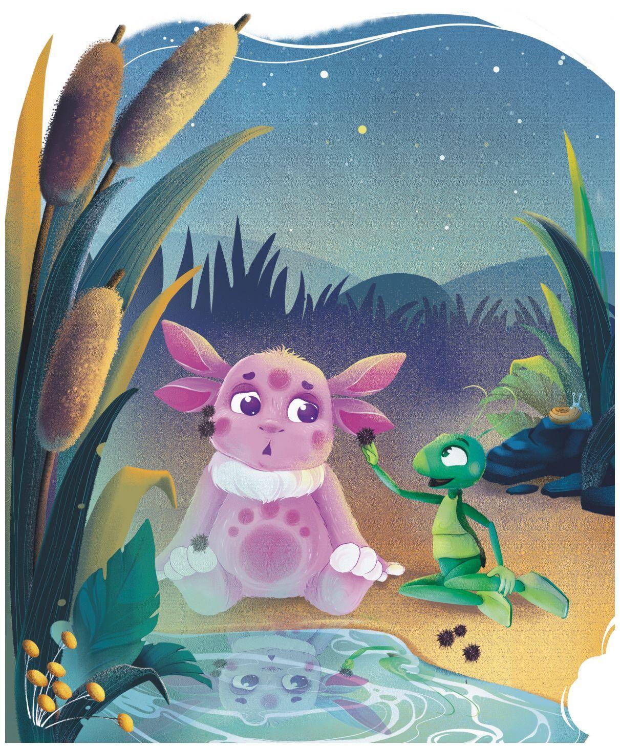– Ой! – испугался кузнечик и подпрыгнул. Малыш посмотрел наверх – над ним возвышались большие тёмные камыши. Никого не было видно. Исчез, наверное, этот зелёненький куда-то.