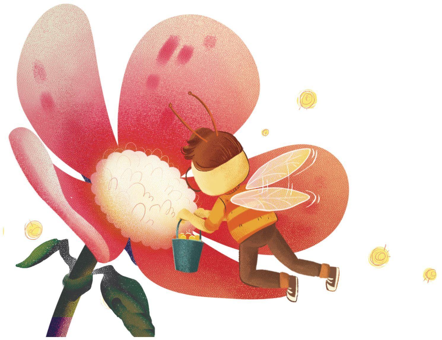 – Ты не пчела и нектар собрать не сможешь! – сказал Пчелёнок. А малыш взял ведёрко и одним движением зачерпнул столько пыльцы, сколько Пчелёнок собирал бы не меньше часа. Тот от изумления открыл рот.