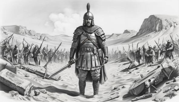 Говорили, что боги пустыни, впечатлённые его жертвой, забрали его к себе. Шептались, что он выжил, но потерял память и теперь бродит по дюнам как вечный страж. А самые суеверные легионеры клялись, что в ночи перед бурей можно увидеть его силуэт на фоне луны — одинокий воин, обречённый вечно охранять ту битву, которую он проиграл, но которой лишил врага победы.