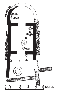 д) Дом мегаронского типа в Димини (Фессалия). Средненеолитический период