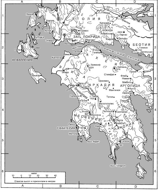 В Беотию, со всех сторон, кроме юго-востока, окруженную горами, можно попасть по узкой долине Кефисса. Ее обширные и плодородные равнины, как и в Фессалии, летом выжжены солнцем, зимой же обильно увлажняются. Две основные равнины отделены друг от друга невысоким кряжем – отрогом горы Геликон. На этом кряже построены Фивы. На богатой северной равнине с центром в Орхомене лежит озеро Копаис, в которое впадает Кефисс. Дно озера известняковое, изрыто туннелями; когда они прочищаются, озеро мелеет. Южную равнину с плодородной почвой пересекает река Асоп, которая протекает по Аттике и впадает в море около Оропа. В древности Беотия славилась зерном, лошадьми, скотом и овцами. Ее население не занималось мореходством, хотя эта страна выходит к Эвбейскому проливу и Коринфскому заливу.