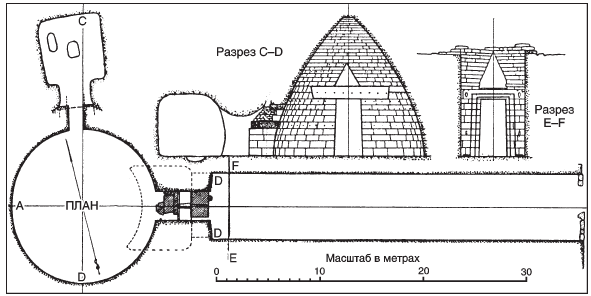 б) Купольная гробница «Сокровища Атрея», построенная в Микенах ок. 1330 г.