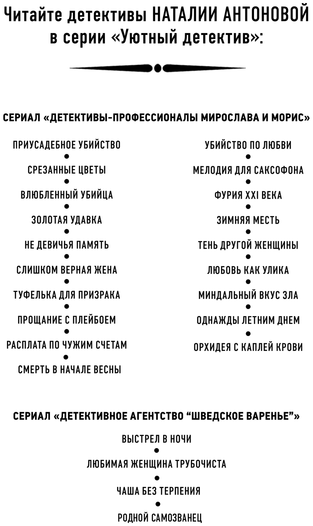 – Для начала, – обратилась Андриана к Ветловой, – вы дадите мне контакты всех лиц, о которых мы с вами только что говорили.