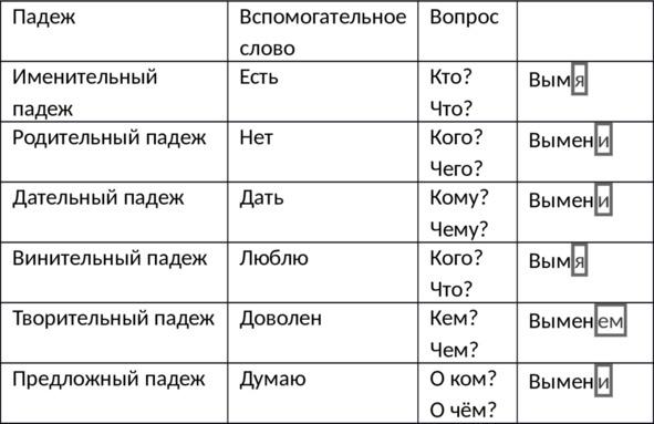 Именительный падеж: есть (вспомогательное слово) кто? что? (вопросы). Есть кто? что? осина, тропинка, ведро, число, сорока, бегство, гнездо.