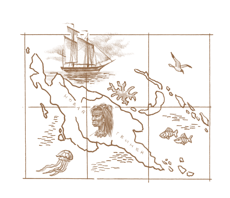 [1] Остров Злых Людей. Так назвали Новую Гвинею португальские и испанские мореходы, открывшие остров в XVI веке. Новой Гвинеей остров назвал испанец Иньиго Ортис де Ретес, посетивший северное побережье в 1545 году; ему показалось, что оно своими тропическими лесами и местным населением, похожим на негров, напоминает западноафриканское побережье Гвинеи.