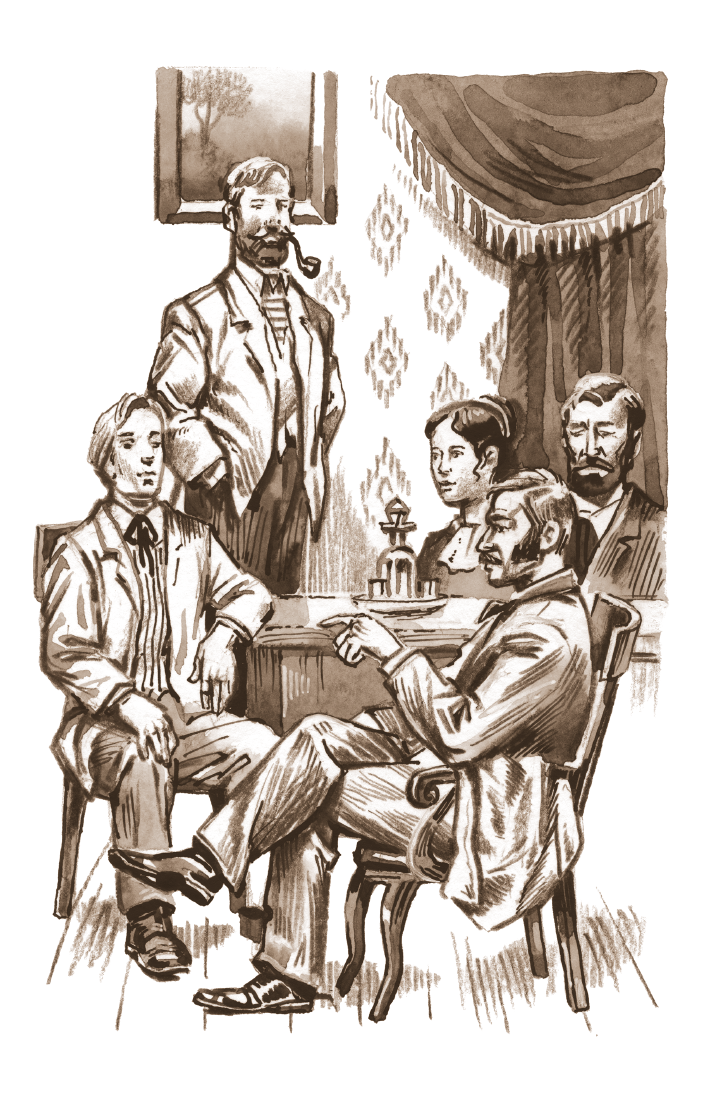 Томек с самого начала приема чувствовал себя не в своей тарелке. Он с трудом улавливал, что происходит вокруг него. Бентли как раз сообщил, что приготовил гостям необыкновенный сюрприз, а Томек в это время с тревогой поглядывал на веранду, где находилась остальная молодежь. Он прислушивался к веселому смеху Салли и серьезному голосу Джеймса Балмора.
