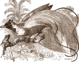 Только недавно мы получили обстоятельные сведения о чрезвычайно красивых птицах Новой Гвинеи, которые уже несколько столетий привозились к нам в изуродованном виде и давали повод к своеобразным сказаниям; их давно назвали и теперь еще зовут райскими птицами, потому что, по существовавшему поверью, они происходят непосредственно из рая. 〈…〉 Это живые, веселые, умные, но кокетливые птицы, вполне сознающие свою красоту и опасность, которой они благодаря ей подвергаются. Они принадлежат к числу бродячих птиц: то прилетают к берегам, то улетают вглубь страны, в зависимости от поспевания древесных плодов. В беспрерывном движении райские птицы перелетают с дерева на дерево, никогда не остаются долго на одной ветке и при малейшем шуме прячутся в густую листву верхушек деревьев; уже перед восходом солнца они бодро и хлопотливо ищут свой корм, состоящий из плодов и насекомых. (А. Брэм. Жизнь животных, т. 2.)