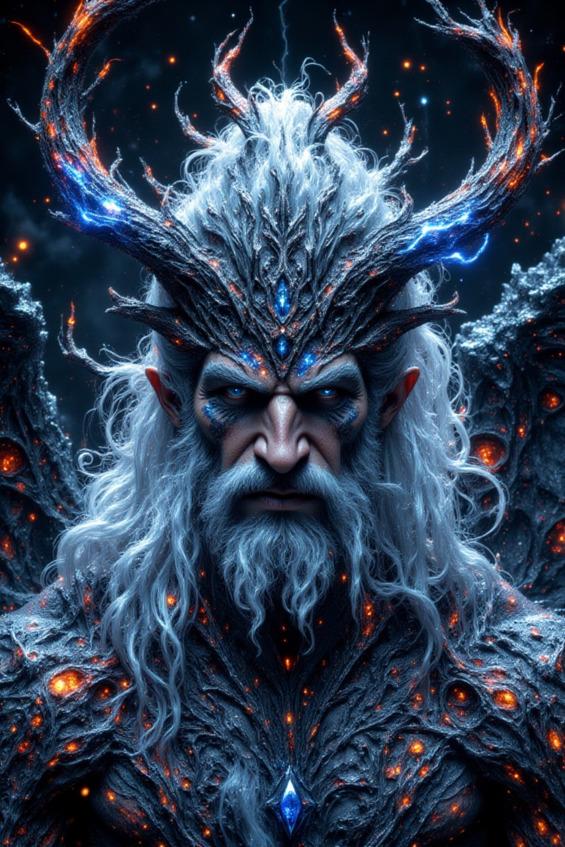 В этом царстве, где время остановилось, Чернобог правит беспрекословно, напоминая всем, кто осмелится войти, о вечной борьбе света и тьмы. Его образ — это символ непреодолимой силы и вечного противостояния, вызывающий одновременно ужас и восхищение его могуществом.