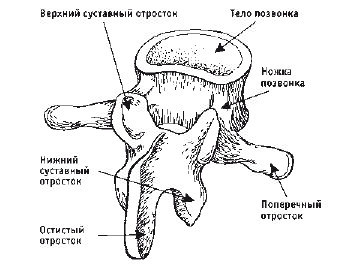По сути, позвонки надеты на стержень, которым является спинной мозг. Вне зависимости от принадлежности к какому-либо определенному отделу позвоночника, все позвонки имеют общее строение и состоят изтела, дуги иотростков.