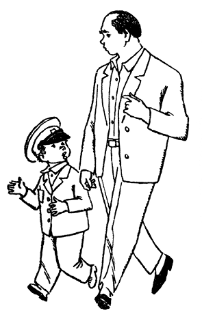 В «Детском мире» мне купили самую маленькую форму, но на примерке в кабине оказалось, что и она велика. Мама попросила снять форму с невзаправдашнего первоклашки, который стоял в витрине и улыбался, но маму уговорили отказаться от этой просьбы и посоветовали форму перешить. Ещё ей надавали советов, чем меня кормить, чтобы я быстрее рос.