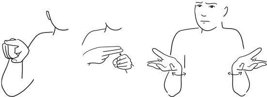 Как похоже на жест, которым пользуются слышащие люди: поднять руки ладонями вверх и развести в стороны, как будто пожимаешь плечами.