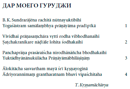 Еще одна трудность касается терминологии и использования слов на санскрите. Шри Айенгар подобрал по возможности наиболее точные и близкие английские эквиваленты и постарался сохранить смысл санскритских понятий. Он подробно описывает детали для того, чтобы читатель понял все, что он хотел сказать. Возьмем, например, само слово «пранаяма». В нем много оттенков и дополнительных значений, так что словосочетания «контроль дыхания», «сознательное дыхание» или «наука о дыхании» лишь частично передают его значение. Например, ни одно из этих выражений не включает идею о кумбхаке (задержке дыхания) или о дыхании через разные ноздри с чередованием в разных пропорциях. Еще менее они могут передать различные виды дыхания, такие как Удджайи, Шитали и другие, и их комбинации с мудрами и бандхами. Шри Айенгар позаботился даже о том, чтобы показать и точно, подробно описать правильное расположение пальцев рук при контроле ноздрей. Тщательный подбор слов, а также необходимые предостережения и иллюстрации делают книгу путеводителем для тех, кто стремится овладеть искусством пранаямы настолько близко к совершенству, насколько вообще это возможно посредством книги.