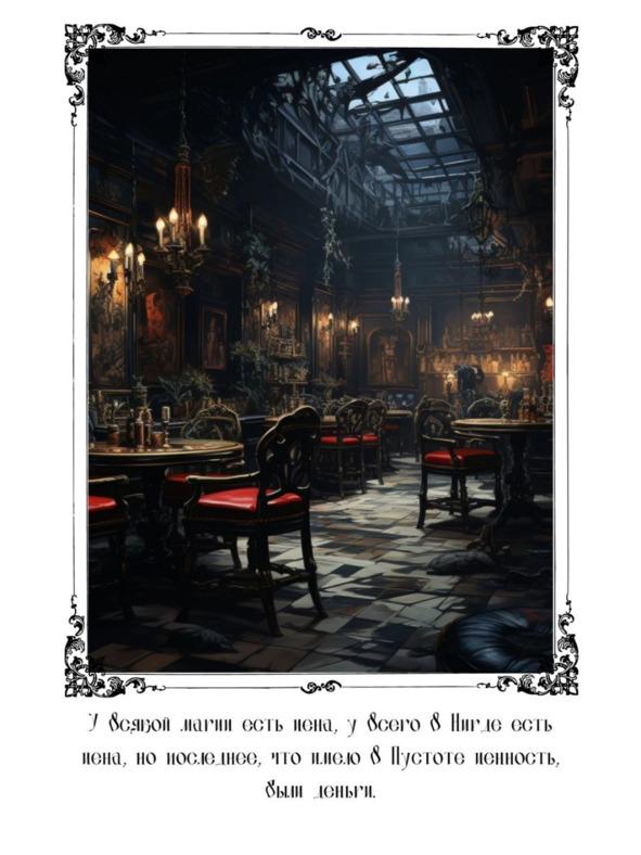 У всякой магии есть цена, у всего в Нигде есть цена, но последнее, что имело в Пустоте ценность, были деньги. Играли на всё: на души, имена, оружие, артефакты, эликсиры, тела и воспоминания; прошлое и будущее, кровь и части тела. Грани между светом и тьмой сливались в смелой игре.