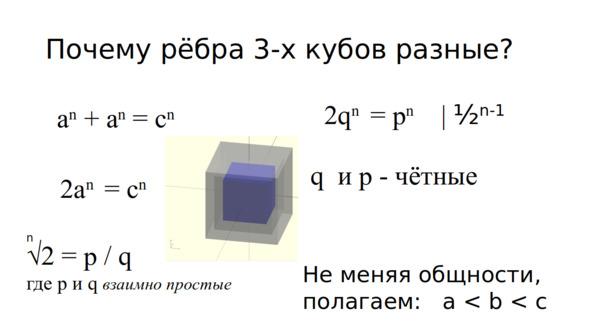 Необычайная красота и лаконичность формулировки Великой теоремы Ферма заставляют искать наглядное решение. Итак, для n ≥ 3 Пифагоровых троек найти ещё никому не удалось. Почему?