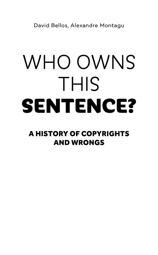 Александр Монтегю, один из авторов этой книги, — юрист в сфере интеллектуальной собственности, первое образование получивший в области сравнительного литературоведения. Дэвид Беллос — профессор сравнительного литературоведения, переводчик и автор нескольких книг. Пять лет назад мы стали вместе изучать взаимоотношения авторского права и культуры, учить этому студентов — и учиться у них в ответ. Цель этой книги — продолжить наш курс и поделиться его наработками с другими.