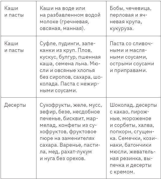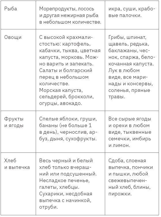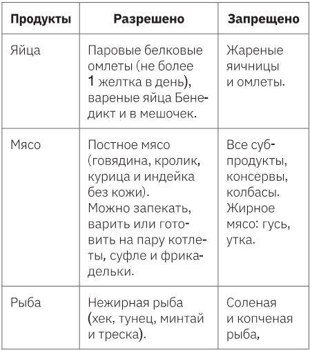 Как упоминалось ранее, в данной диете есть разрешенные и запрещенные продукты, что напрямую обусловлено необходимостью разгрузки ЖКТ.