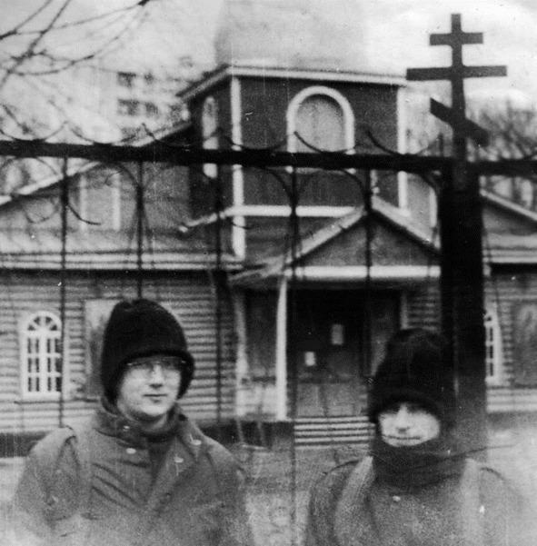 Перебирая семейные фотоархивы Травника, наткнулась на интересную фотографию, датированную 1984 годом. На снимке два новоявленных друга стоят у ворот храма свт. Николая Чудотворца в Бирюлёво ещё задолго до крещения каждого из них в этом же храме. Рассматривая фото, не перестаю удивляться Божьему промыслу, положившему начало их дружбе, и прямиком приведшему их к вратам этого храма для осуществления всех последующих замыслов каждого.