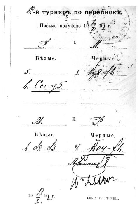 С начала 1890-х гг. турниры по переписке стали проводиться регулярно. Их организовывали петербургский «Шахматный журнал», московское «Шахматное обозрение», несколько газет, а позднее и частные лица.