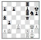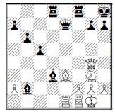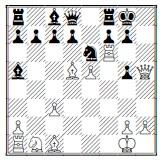 11. e5! Энергичный ход, впервые сделанный в этой партии. Теперь у белых сильная атака. 11…de? 12. Фd3+! Хотя у черных лишняя фигура, им, пожалуй, уже можно сдаваться, так как инициатива белых развивается почти беспрепятственно.