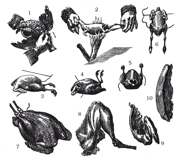 Чтобы показать, насколько различна подача блюд на обыкновенных и дворцовых кухнях, в этой книге, в отделе холодных закусок, помещены рисунки с блюд лучших поваров, артистов своего дела: Зееста, Астафьева, Козлова и проч., которые они делали для ежегодных выставок общества поваров. Достаточно только взглянуть на эти рисунки, чтобы понять, в чем именно заключается разница. Помимо того, что провизия для этих блюд стоит сотни рублей, они требуют усидчивой работы в продолжение нескольких дней, и не одного, а нескольких человек. Для того чтобы создать такое блюдо, как кабанья голова или галантин из лебедей, нужно иметь и вкус художника, и знания скульптора, и талантливую фантазию. Даже и многолетнего опыта недостаточно для этого, а нужно быть артистом своего дела. Конечно, никакая хозяйка или кухарка не сумеет сделать подобие этого, да это им и не нужно. Для поваров же выставки эти имеют поучительное значение. Они вызывают у них соревнование в работе, а следовательно, ведут кулинарное искусство к дальнейшему развитию.