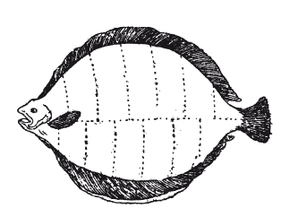 • Соль (камбала). Соль чистится следующим способом: соскоблив чешую с нижней стороны рыбы, содрать кожу с верхней (черной) стороны рыбы; затем выпотрошить через разрез около жабр (сделать поперечный разрез кругом жабр) и соскоблить кровь с позвонков.
