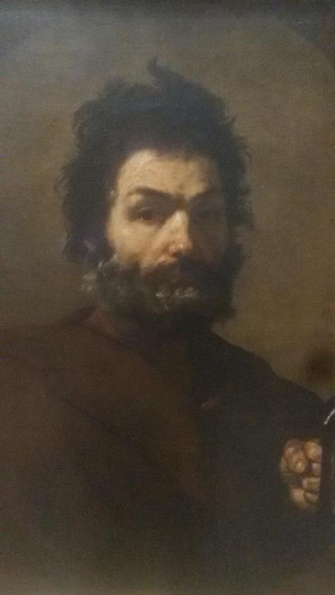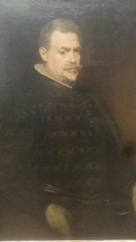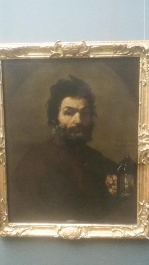 Как уже сказано, рядом размещены пять прекрасных портретов Ван Дейка, далее — один, но великолепный портрет Диего Веласкеса, а рядом с ним — «Диоген» Риберы. Взъерошенные волосы, мирская отрешенность и аскетизм в облике, пронизанный болью взгляд, тлеющий в руке фонарь — философ безуспешно ищет Человека, он больше не может вынести муки духовного одиночества…