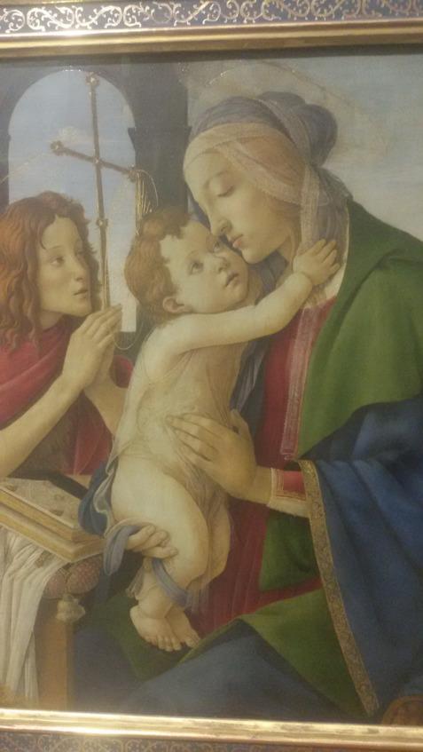 Ботичелли представлено в экспозиции галереи столько же, сколько и в Лувре. Полотно «Несколько эпизодов их жизни святого» интересно в основном как творение великого мастера, а вот его «Мадонны»… Они непросто захватывают восприятие, но еще воочию свидетельствуют подчас мучительные искания живописцев Возрождения, в которых сам Ботичелли занимает одно из ключевых мест. Ботичелли, пожалуй, более всего приблизился к одной из главных задач живописи Возрождения, в полной мере удавшейся лишь Рафаэлю — создать совершенный образ Мадонны, породнить в нем «божественное» и «земное», сплавить в одно целое одухотворенность и чистоту с красотой и совершенством молодости. Возможно — приблизился в той же мере, в которой и Перуджино, однако не достиг совершенства великого ученика Перуджино — Рафаэля… В Галерее выставлены две его «Мадонны» — «Мадонна с младенцем и Иоанном Крестителем» и «Мадонна маленьким Иисусом и детьми»… Ботичелли в течение многих лет позировала одна и та же модель — прелесть и чистоту ее лица мы видим в «Мадонне с детьми» из дрезденского собрания, в «Рождении Венеры» и «Мадонне» из собрания Галереи Уфицци. Убежденный платоник, Ботичелли то идеализировал и максимально обобщал образ Мадонны, словно избавляя его от всякой связи с неповторимой и живой натурой (здесь же висящая «Мадонна с детьми» подтвердит это), то своеобразно идеализировал саму натуру и присущие ей формы, при этом сохраняя ее жизненность, черты ее индивидуальности, позволяя ей «дышать» и «прочитываться» в созданном цельном образе. Две ботичеллиевских Мадонны из Дрезденской галереи очень отчетливо символизируют искания и самого художника, и трехсотлетней эпохи, одной из выдающихся фигур которой он был — найти совершенные эмпирические формы для «идеального» и «трансцендентного», для наиболее символичных и обобщенных образов, воплощающих ключевые философские и религиозно-нравственные идеи, смыслы, настроения и т.д., превратить эмпирические формы в язык для религиозно-философских идей, сохраняя при этом их жизненную достоверность и убедительность. Эпоха и поколения ее художников разбивают кажется бесконечные усилия и попытки у алтаря величественной задачи — совершенно вообразить, помыслить и воплотить «идеальное», религиозно-трансцендентное и философское языком постигаемой в ее свойствах и загадках натуры, достоверно переданных эмпирических форм, они словно бы разрываются между с одной стороны идеальным, мыслимым и трансцендентным, требующим в воплощении максимальной символичности и обобщенности образов, а с другой — выразительными возможностями и ограниченностью натуры одновременно. Творчество не только Ботичелли, но Перуджино, Леонардо и многих других, разрывается между тяготением к иконографичности и совершенной идеализации образов Мадонны (что впрочем всегда сочетается с высотой передачи эмпирических форм как таковых) и упоением возможностями, поэтичностью и выразительностью неповторимой натуры. Подобно леонардовской «Мадонне Лита», «Мадонна с детьми» Ботичелли представляет собой совершенно обобщенный, идеализированный образ, выполненный с гениальным мастерством и пониманием загадок натуры как таковой, однако «дышащий холодом» и «обезжизненный». Соседствующий с ней образ Мадонны инаков — художник упивается в нем поэ